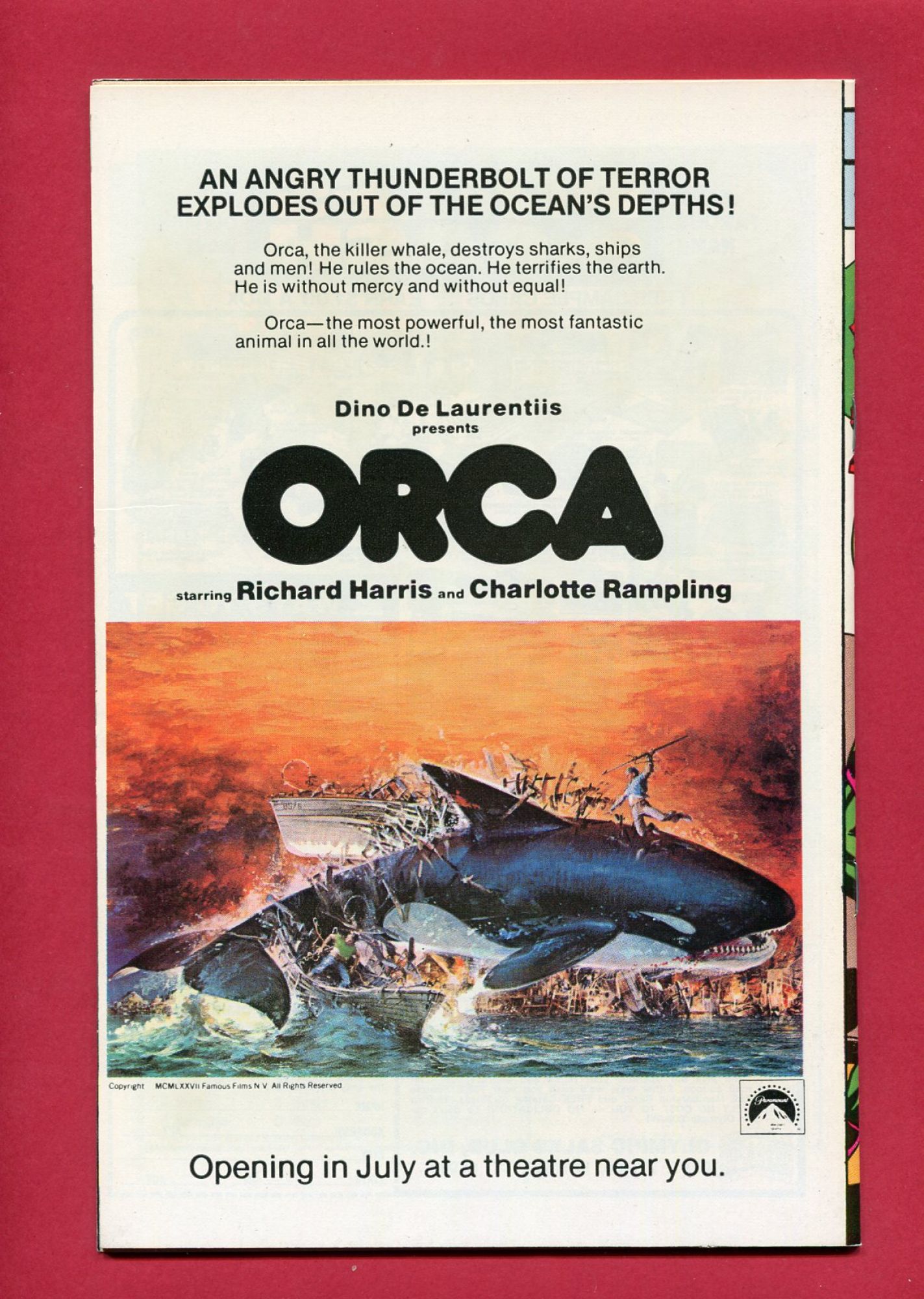 Grade : 8.5 VF+ : white pages, minimal spinal stressing, slight miswrapped cover, 3cm long crease on left edge of back cover