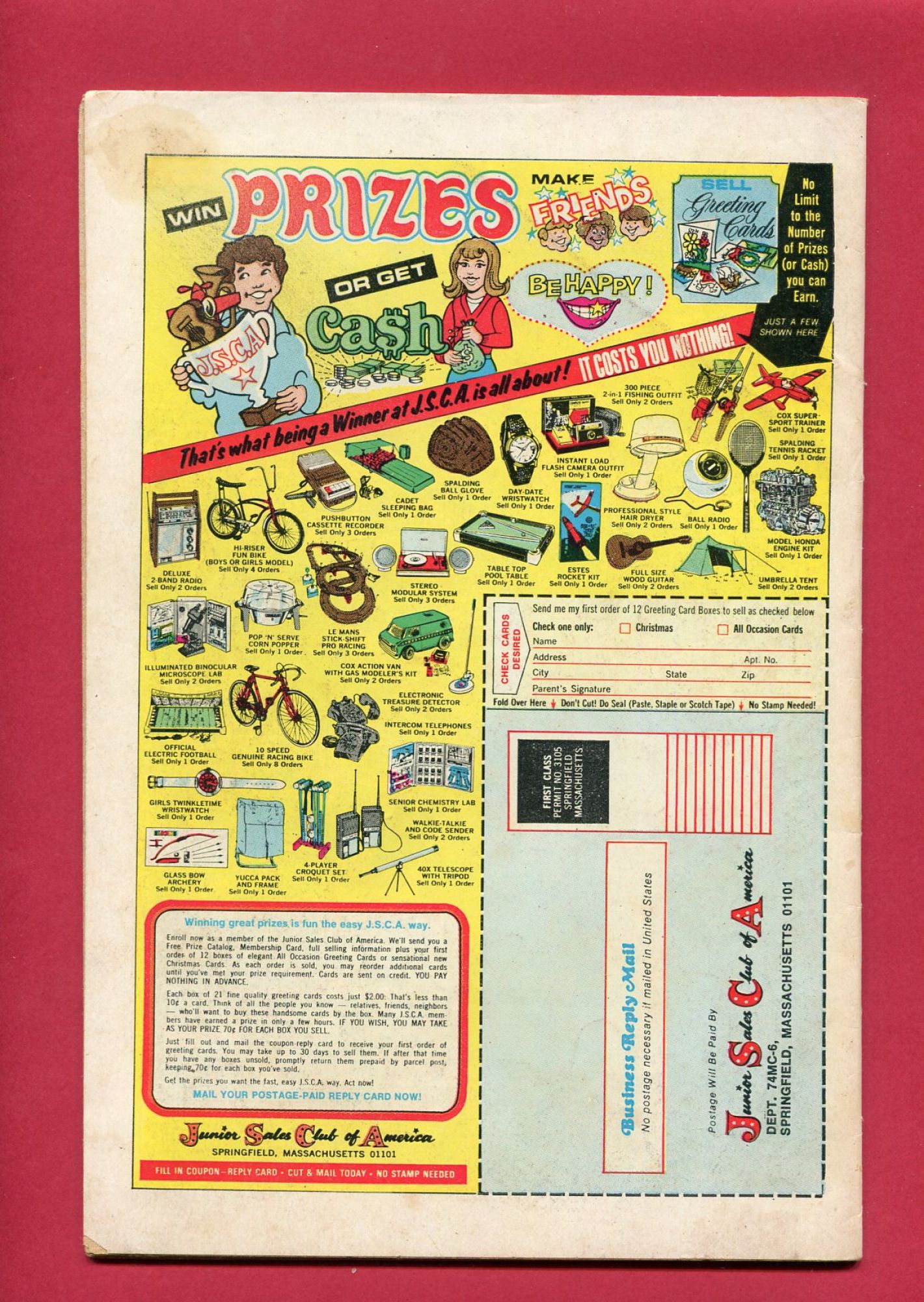 Grade : 5.0 VG/FN: off-white pages, moderate spinal stressing with colour breaks, crease on front cover from top staple to the middle of the top edge, on back cover bottom left hand corner small 5mm tear with missing paper